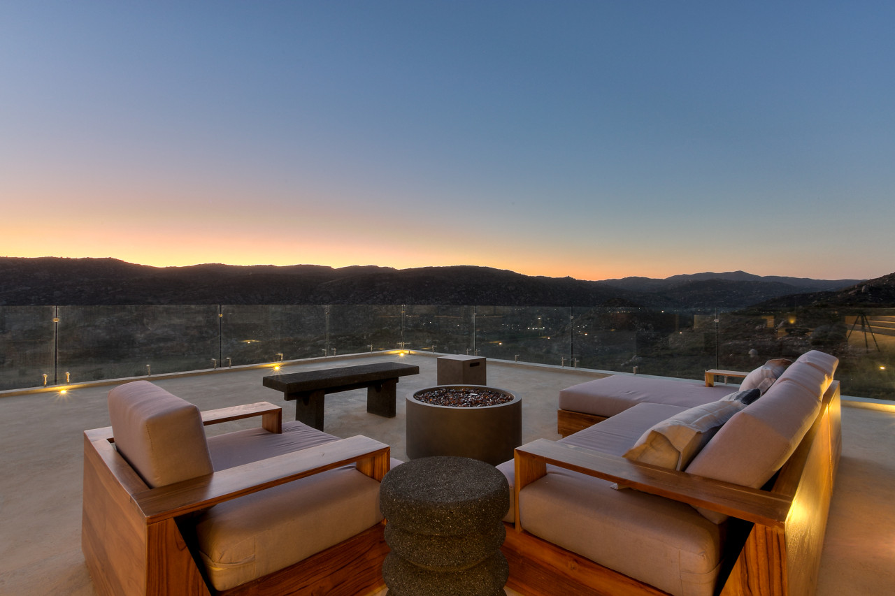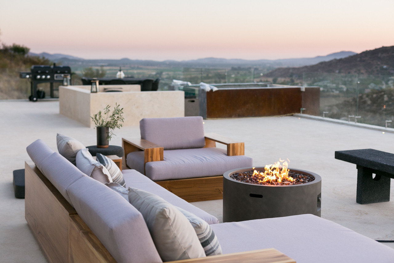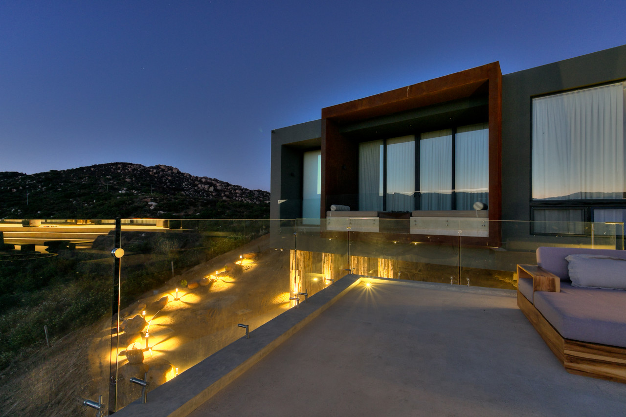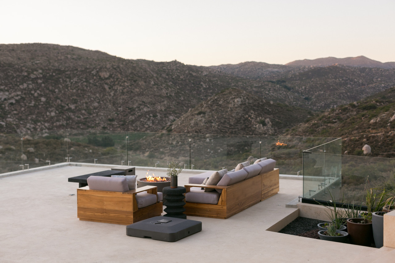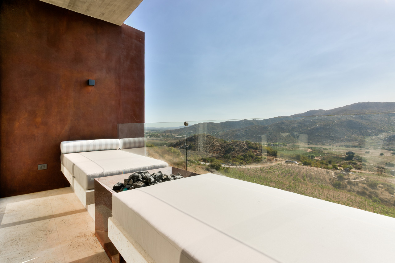 Escape to the heart of Valle de Guadalupe, Mexico’s premier wine region, at this secluded retreat offering 2 luxurious 3-bdrm+Studio villas. Perfectly situated for exploring acclaimed wineries, gourmet dining, and stunning scenery, this modern villa offers breathtaking architecture and landscaping, including an infinity plunge pool and expansive outdoor terrace overlooking the renowned Kasa Kava and neighboring vineyards. A hidden gem, ideal for families and groups, each bedroom features its own private balcony with lounge seating and a fire pit, perfect for taking in the nonstop views. Inside, enjoy a cozy loft with a living room, a spacious dining area with a wine cellar, and a gourmet kitchen, providing ample space for relaxation and connection. Floor-to-ceiling windows flood the home with natural light, while the large terrace offers al fresco dining, lounge seating, a BBQ grill, and fire pits—ideal for watching sunsets with a glass of local wine. Each bedroom is tastefully decorated, featuring en-suite bathrooms, luxury amenities, and plush bedding for a restful night’s sleep. Modern conveniences include high-speed Wi-Fi (Starlink), smart TVs, Amazon Echo, Nespresso machines, safes, steamers, hair dryers, and Sonos audio systems in both living areas. Explore nearby attractions, including top-tier wineries, Michelin Star restaurants, and scenic hiking trails—all just a short drive away. Kasa Kefi Bedroom Configuration: Master Suite: This luxurious suite features a king-size bed, a desk, a spacious bathroom with dual showers, a separate WC area, a walk-in closet and private terrace with 2 lounge beds and fire pit. The loft area includes a gourmet kitchen, dining space for 8, a living room with an ethanol fireplace, and a large terrace complete with an infinity plunge pool, BBQ, two lounge areas, two fire pits, and four sun beds. Optional Studio: offers a queen sofa bed and a full ensuite bathroom Master bedroom max capacity: 4 guests. Suite 1: Offers a King bed + Nook with 1 XL Twin bed and private terrace with 2 lounge beds and fire pit. (Max 3 guests). Suite 2: 2 Queen beds + Nook with XL Twin and private terrace with 2 lounge beds and fire pit (Max 5 guests). Remember, you can request to book separate bedrooms. The Master Suite has a private entrance and can be closed off for complete privacy. If booking Suite 1 or Suite 2, please note that other guests may rent the other suite, and you'll share the living area between the two suites. Contact us for more information and accurate pricing for your needs.