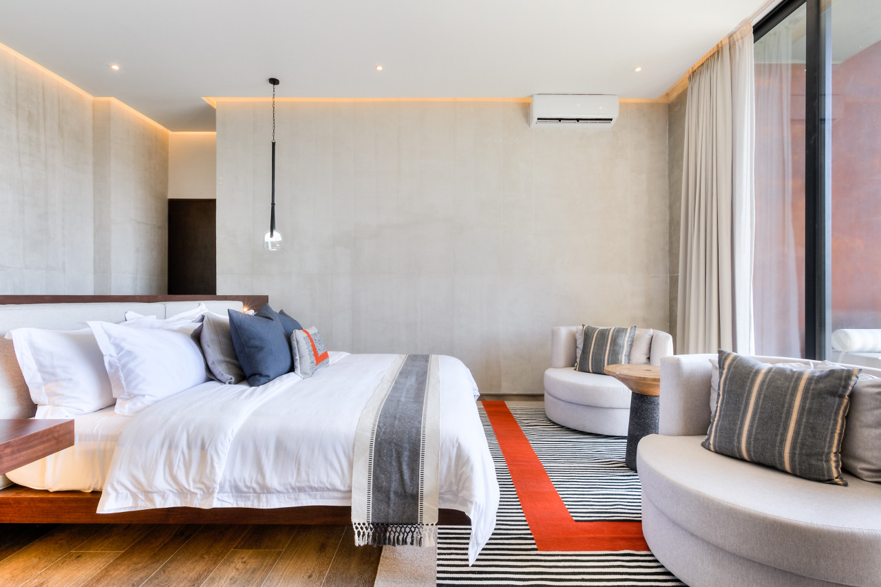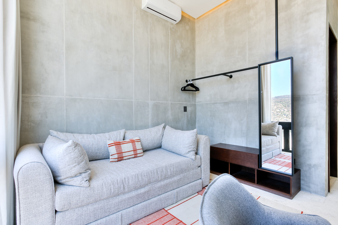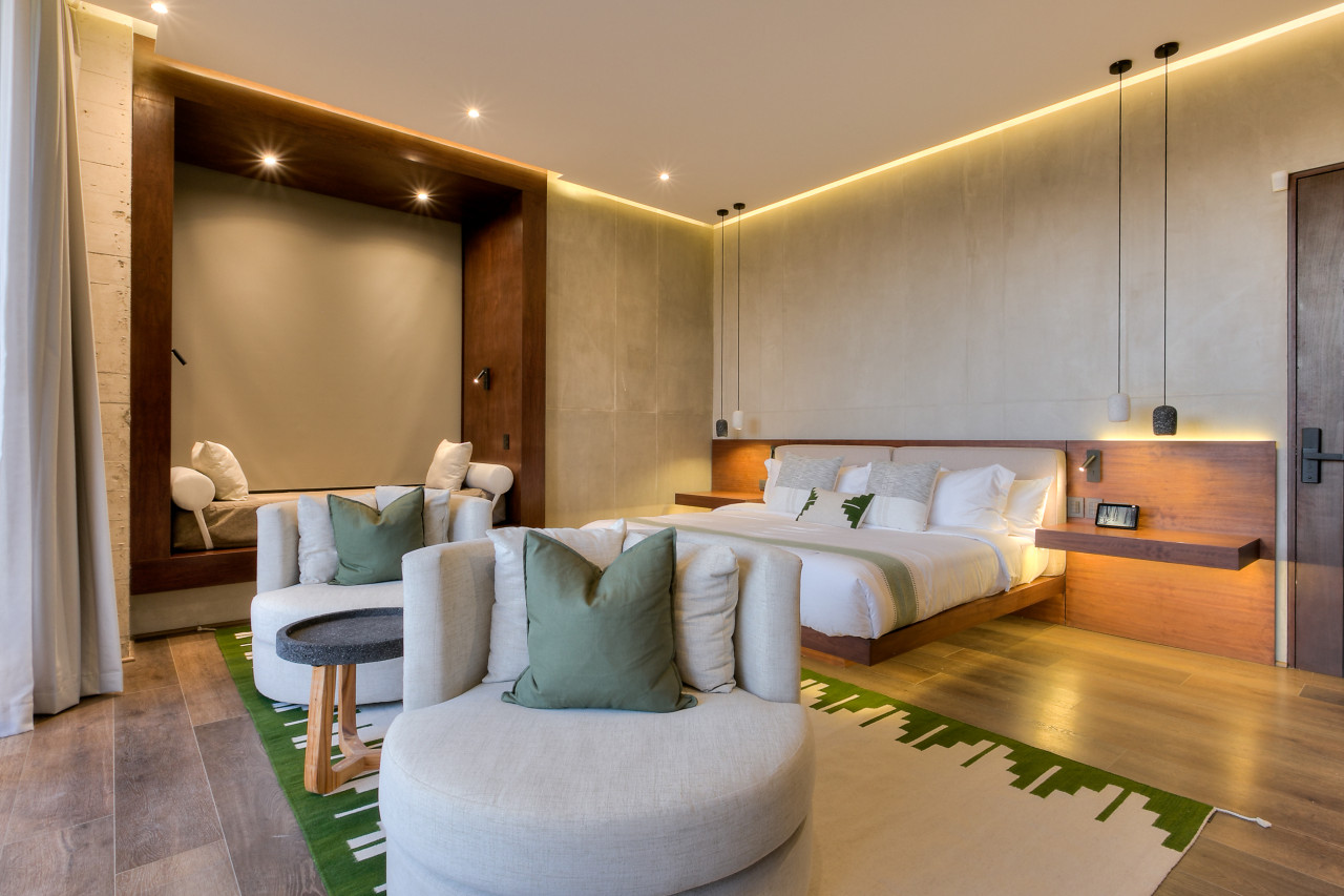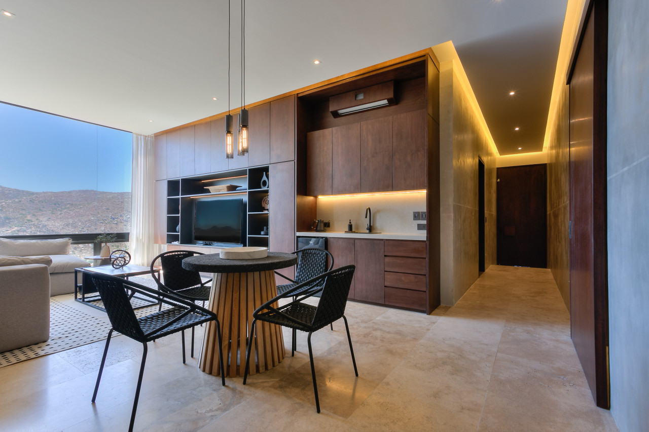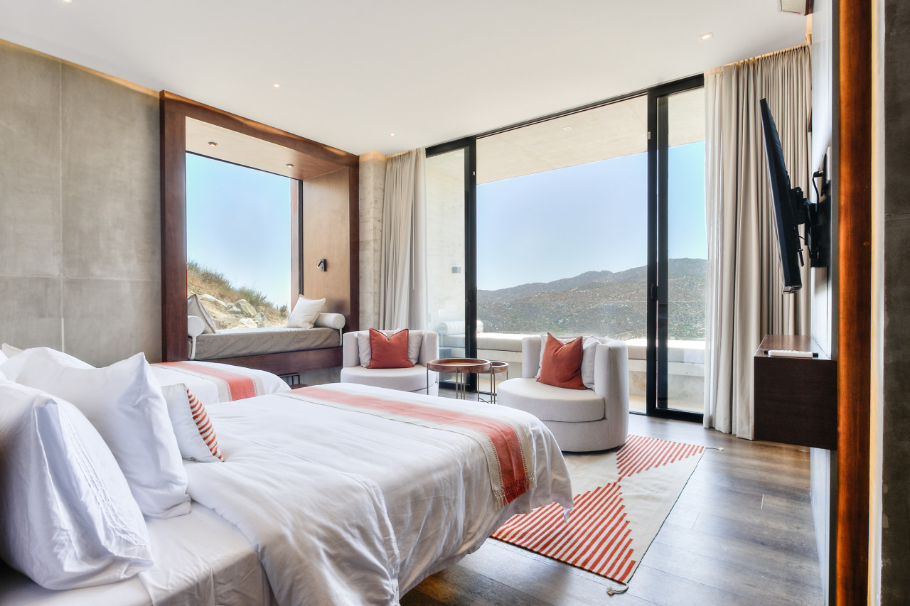 Escape to the heart of Valle de Guadalupe, Mexico’s premier wine region, at this secluded retreat offering 2 luxurious 3-bdrm+Studio villas. Perfectly situated for exploring acclaimed wineries, gourmet dining, and stunning scenery, this modern villa offers breathtaking architecture and landscaping, including an infinity plunge pool and expansive outdoor terrace overlooking the renowned Kasa Kava and neighboring vineyards. A hidden gem, ideal for families and groups, each bedroom features its own private balcony with lounge seating and a fire pit, perfect for taking in the nonstop views. Inside, enjoy a cozy loft with a living room, a spacious dining area with a wine cellar, and a gourmet kitchen, providing ample space for relaxation and connection. Floor-to-ceiling windows flood the home with natural light, while the large terrace offers al fresco dining, lounge seating, a BBQ grill, and fire pits—ideal for watching sunsets with a glass of local wine. Each bedroom is tastefully decorated, featuring en-suite bathrooms, luxury amenities, and plush bedding for a restful night’s sleep. Modern conveniences include high-speed Wi-Fi (Starlink), smart TVs, Amazon Echo, Nespresso machines, safes, steamers, hair dryers, and Sonos audio systems in both living areas. Explore nearby attractions, including top-tier wineries, Michelin Star restaurants, and scenic hiking trails—all just a short drive away. Kasa Kefi Bedroom Configuration: Master Suite: This luxurious suite features a king-size bed, a desk, a spacious bathroom with dual showers, a separate WC area, a walk-in closet and private terrace with 2 lounge beds and fire pit. The loft area includes a gourmet kitchen, dining space for 8, a living room with an ethanol fireplace, and a large terrace complete with an infinity plunge pool, BBQ, two lounge areas, two fire pits, and four sun beds. Optional Studio: offers a queen sofa bed and a full ensuite bathroom Master bedroom max capacity: 4 guests. Suite 1: Offers a King bed + Nook with 1 XL Twin bed and private terrace with 2 lounge beds and fire pit. (Max 3 guests). Suite 2: 2 Queen beds + Nook with XL Twin and private terrace with 2 lounge beds and fire pit (Max 5 guests). Remember, you can request to book separate bedrooms. The Master Suite has a private entrance and can be closed off for complete privacy. If booking Suite 1 or Suite 2, please note that other guests may rent the other suite, and you'll share the living area between the two suites. Contact us for more information and accurate pricing for your needs.